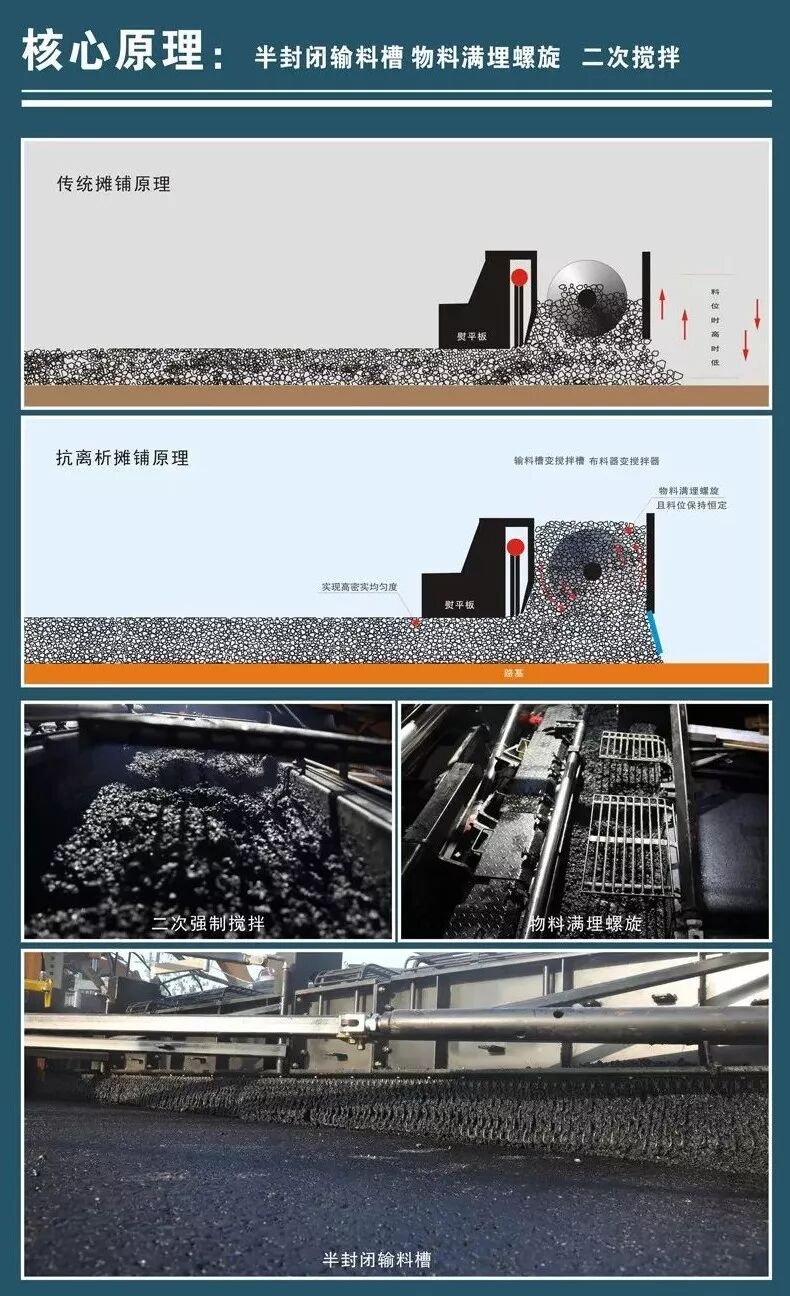 有效解决级配离析、温度离析、密度离析,避免并机离析;