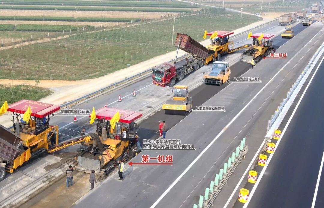△DT系列抗离析摊铺机一机代替两机大宽度、大厚度水稳摊铺
