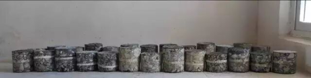 云南大丽高速最初用进口摊铺机并机分层摊铺的水稳层,沥青下面层取芯厚度差别很大