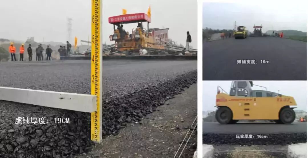 水稳层三层变二层 双机组同步大厚度快速连铺连压 初凝期内整体成型 ,好的基础上大大缩短工期。